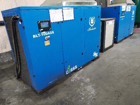 为此,客户急需对空压机进行升级改造。博莱特代理商博越机电汪总亲临现场进行多次勘查、测试并和公司技术人员反复讨论,为客户提供了一个既满足用气,又满足气量和气压变动的解决方案。经过反复沟通说明,客户逐渐信任博莱特的实力,最终决定采用此方案。方案中,博莱特选用了公司新款产品:BLT S油冷永磁变频空压机 和其它加强型1级能效的机器等产品组合,共计5台,同时配有集中控制系统。